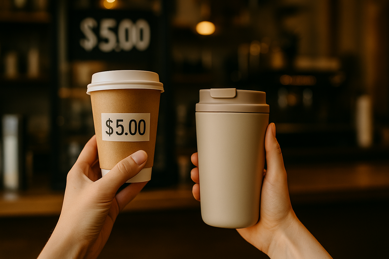 Sauf qu’à la fin du mois, t’as investi 100 $… dans des tasses jetables.