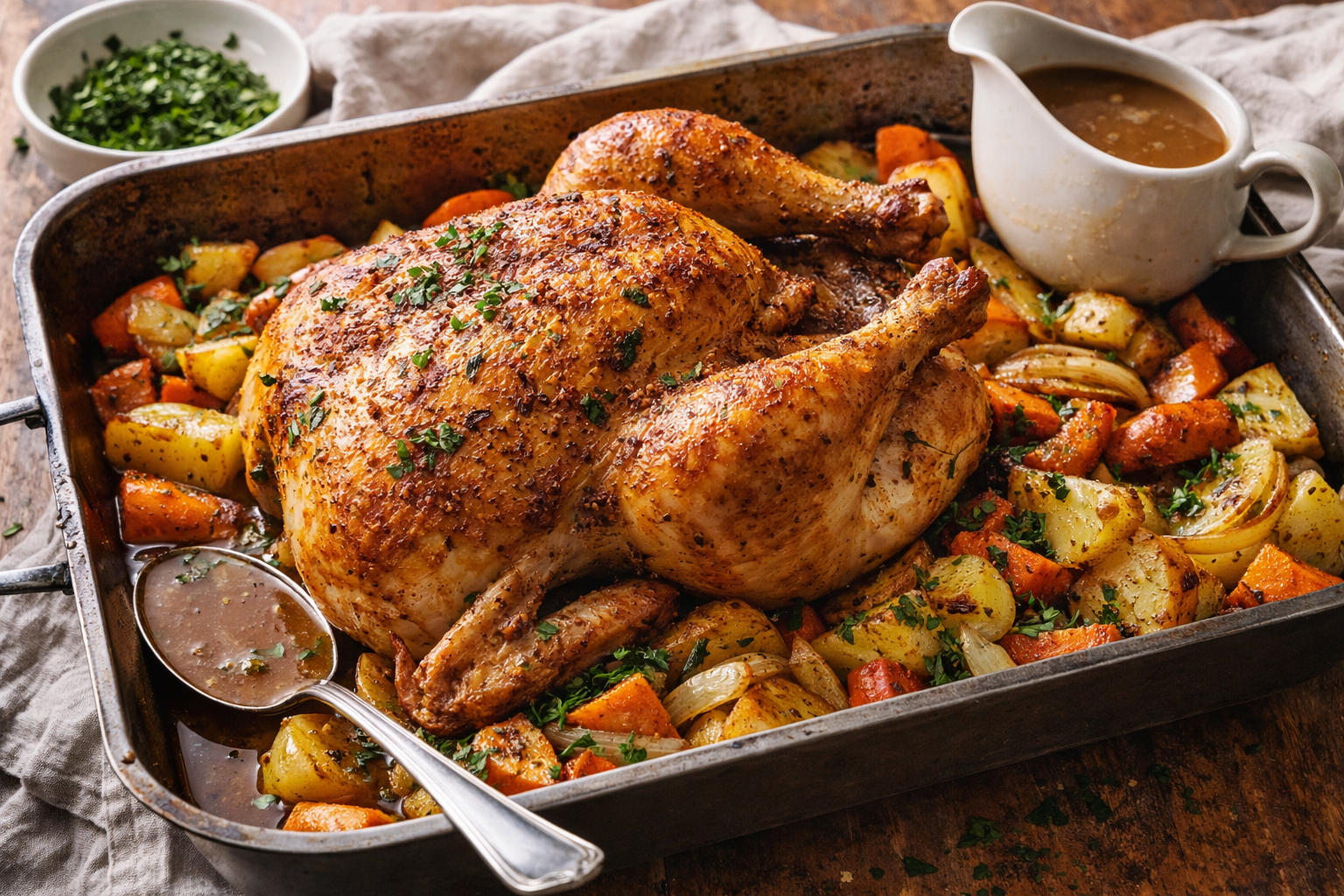 Le poulet entier, c’est un des achats les plus stratégiques de l’épicerie quand il tombe à bon prix. Parce qu’au fond, tu n’achètes pas juste un souper : tu achètes un repas principal, des restes pour demain, puis souvent la base d’un bouillon. Cette recette met justement en valeur cette logique-là. On garde ça simple : un poulet bien rôti, des légumes qui cuisent dans ses jus, puis une petite sauce minute qui vient tout attacher sans te coûter une fortune. C’est le genre de plat qui sent la maison, le dimanche, puis la paix pendant cinq minutes autour de la table. Pas besoin d’une recette compliquée pour avoir quelque chose de bon, généreux et satisfaisant. Quand les ingrédients sont bien choisis et bien traités, ils font le travail. Et ça, c’est exactement la beauté de la cuisine FRUGALO : moins de bruit, plus de valeur, puis un vrai rendement dans l’assiette.
