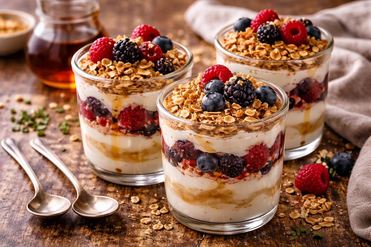 Il y a des desserts qui coûtent une fortune pour impressionner deux minutes, puis il y a ceux-ci : simples, beaux, frais, puis franchement intelligents. Quand le yogourt tombe en spécial, que les fruits surgelés sont enfin à bon prix, puis que le sirop d’érable reste encore dans une zone acceptable, il y a moyen de faire un dessert qui a de l’allure sans embarquer dans le grand délire pâtissier. Ces verrines-là, c’est exactement ça. Elles apportent une belle finale au repas avec très peu d’effort, puis donnent cette impression de petit luxe calme qu’on aime tant. Le yogourt est doux et crémeux, les fruits donnent la couleur et l’acidité, puis l’avoine grillée ajoute le croquant qui change tout. C’est simple dans le bon sens : pas vide, pas plate, pas cheap. Juste bien pensé, bien balancé, puis parfait pour un dessert FRUGALO qui respecte autant le budget que le plaisir.