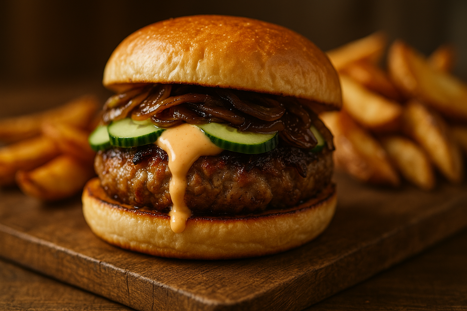 Former 4 galettes (≈ 115 g / 4 oz). Cuire 5 min par côté (feu moyen-fort).