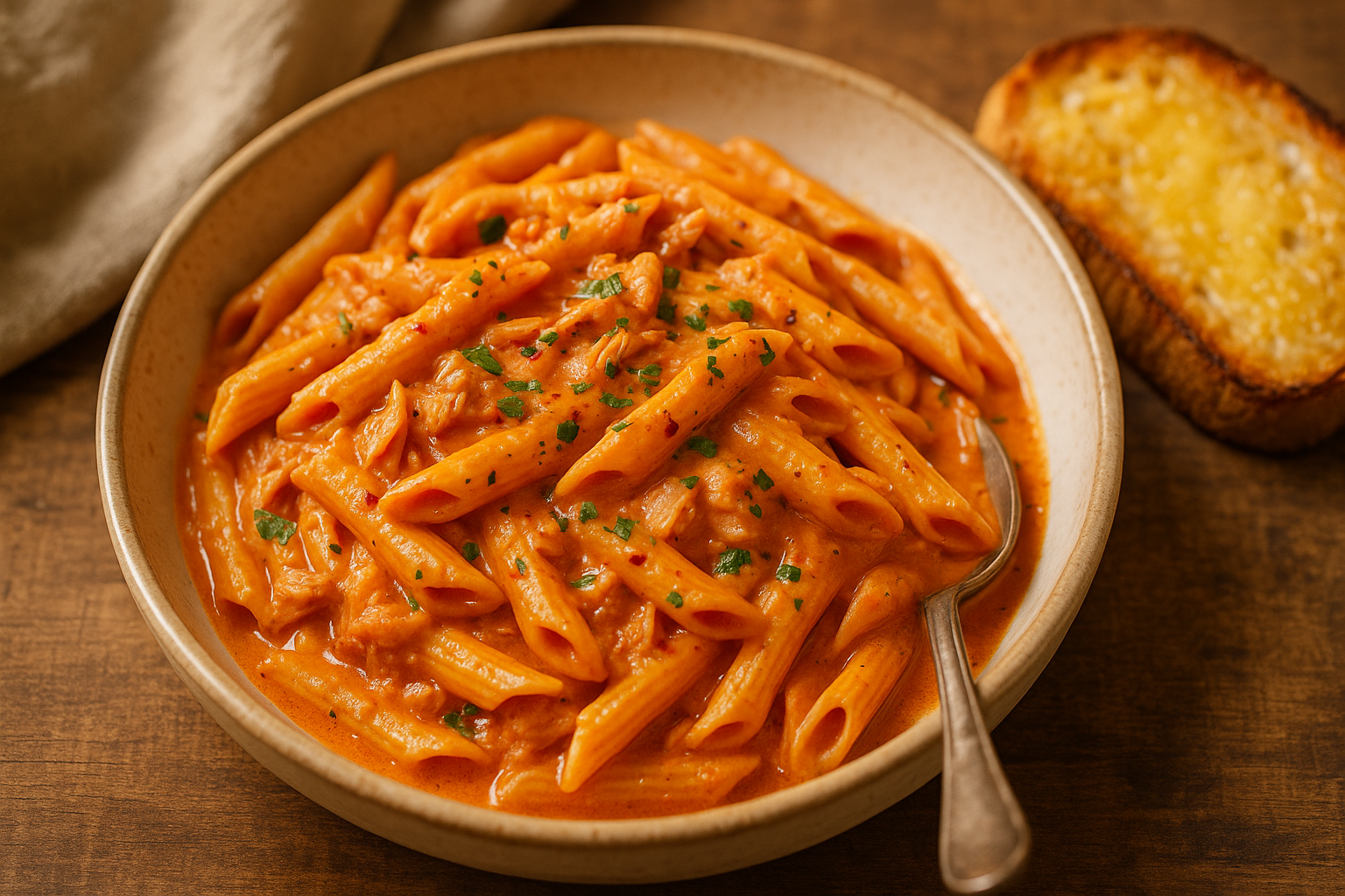 5) Pâtes au thon et tomates crémeuses (léger piment)