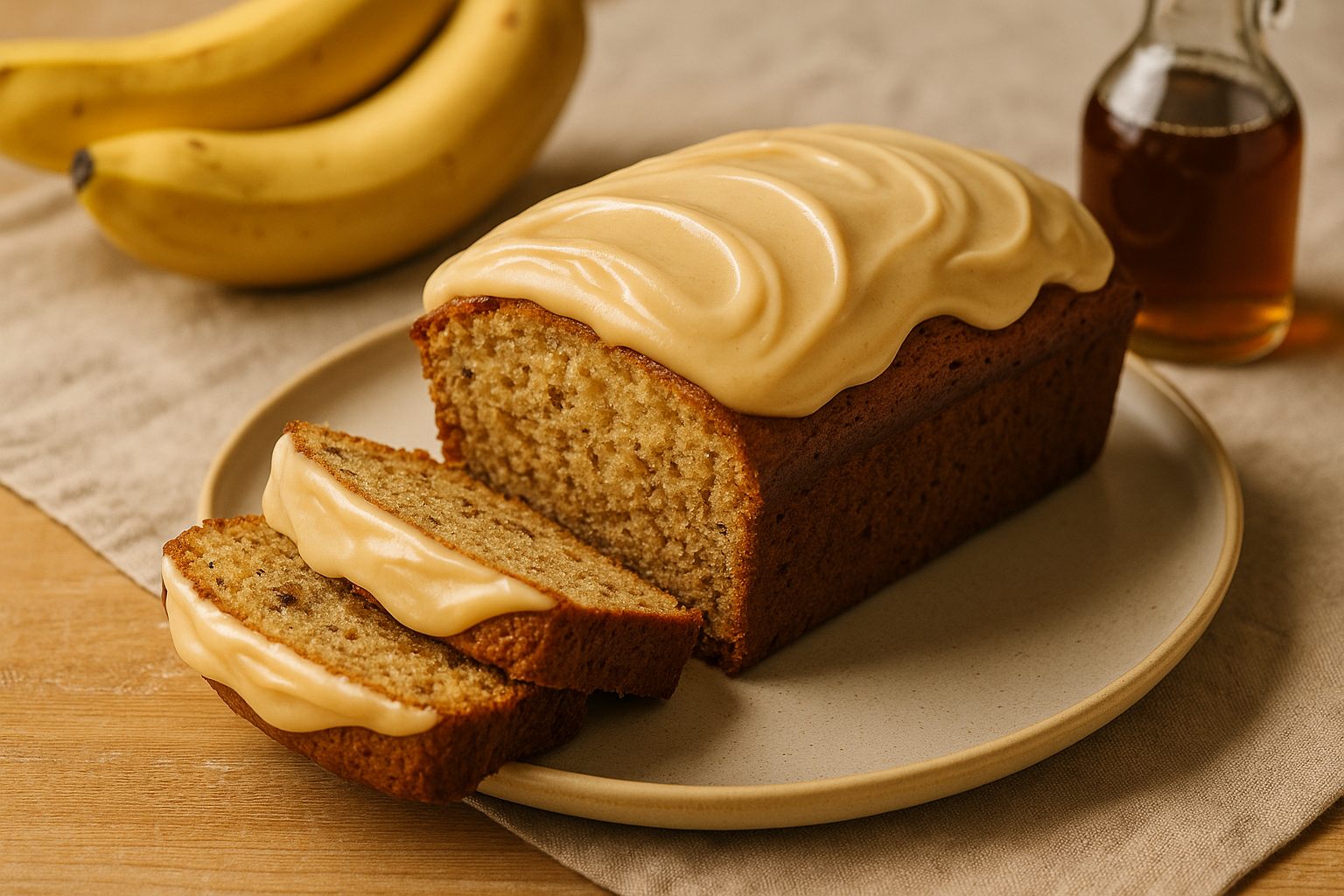 Fouetter fromage + beurre ; ajouter sucre, sirop, vanille, sel. Glacer le pain refroidi.