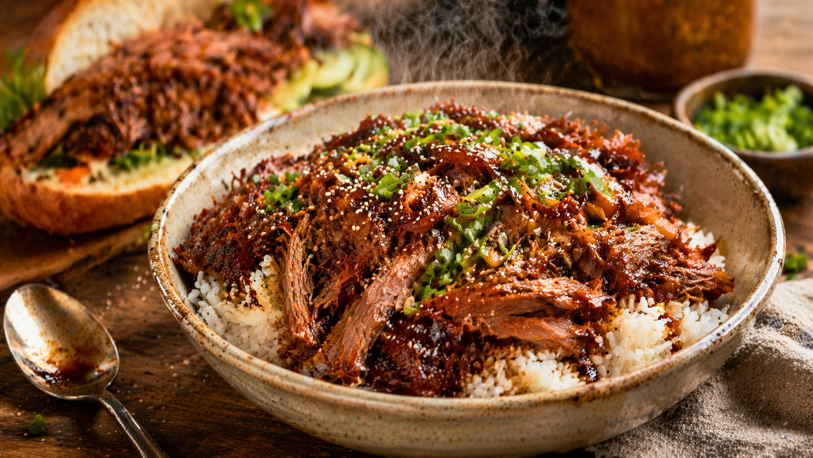 Le secret d’un pulled pork rentable, ce n’est pas juste le prix de la viande. C’est le rendement. Fais-en une bonne quantité, puis pense tout de suite à ses deux vies suivantes. Une partie en bol avec riz ou patates. Une autre en sandwich chaud. Une autre dans un wrap ou sur des nouilles. Quand un seul bloc de viande nourrit plusieurs formats, la circulaire commence enfin à travailler pour toi.