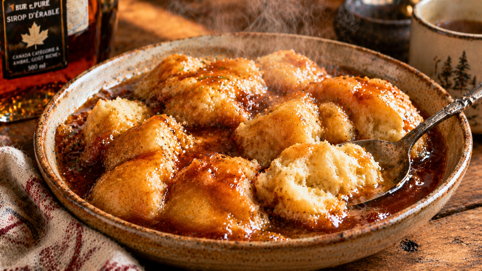 Quand le sirop d’érable redescend dans une zone acceptable, il faut en profiter pour faire un dessert qui a une vraie présence. Pas juste un petit quelque chose poli. Quelque chose qui sent la maison, le réconfort, la table qui se tait deux secondes parce que tout le monde mange. Ces grands-pères-là gardent l’âme du classique, mais avec une petite touche plus généreuse, plus moelleuse, plus “dessert de fin de semaine qui mérite le détour”. La pâte cuit directement dans le sirop chaud, absorbe juste ce qu’il faut, puis donne un résultat tendre, brillant et complètement indécent dans le bon sens. Avec le sirop d’érable à 5,97 $ chez Metro, c’est exactement le genre de folie maîtrisée qu’on aime.I