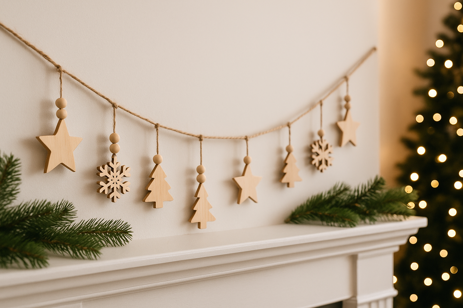 La deuxième grande tendance 2025, c’est le bois naturel, une valeur sûre qui traverse les modes sans jamais perdre en style. Le bois, c’est la base du design scandinave, du look chalet moderne, et de toute ambiance calme, zen, minimaliste mais profondément chaleureuse. Contrairement aux décorations trop colorées ou trop brillantes qui peuvent rapidement tomber dans le kitsch, les ornements en bois apportent de la sobriété, de la classe et un sentiment d’authenticité.