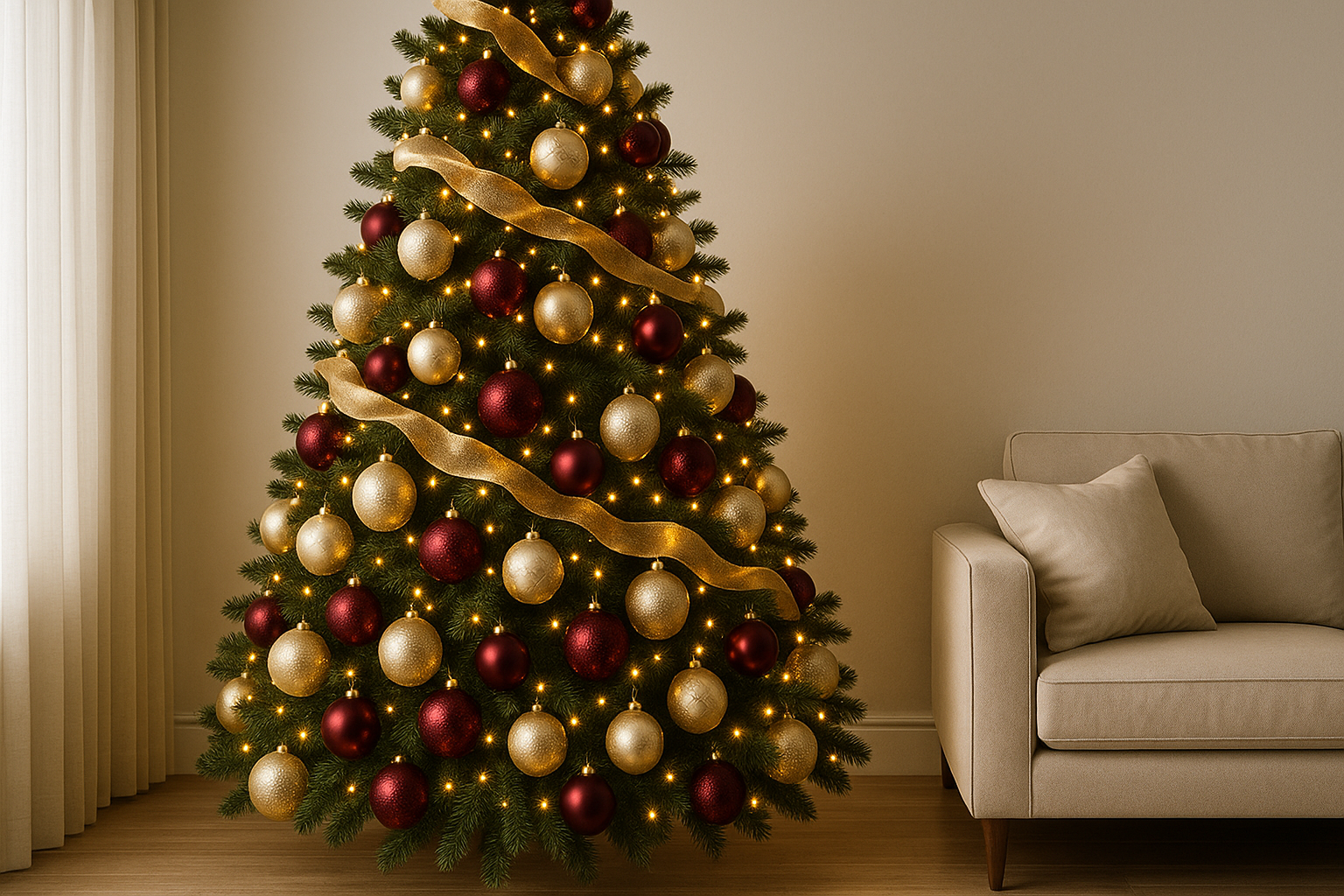 La première grande tendance 2025, c’est clairement le luxe accessible, et c’est celle qui crée le plus grand impact visuel pour le plus petit budget. On n’est plus dans les décorations criardes, chargées ou trop brillantes. On parle d’un luxe doux, moderne, parfaitement maîtrisé, qui transforme ton sapin en pièce maîtresse élégante, sans effort… et surtout sans vider ton compte bancaire.
