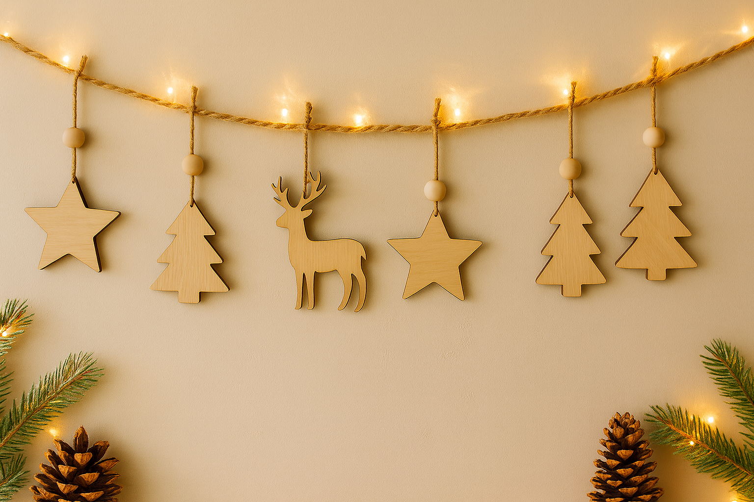– Sapins en bois découpés au laser (style minimaliste très recherché)