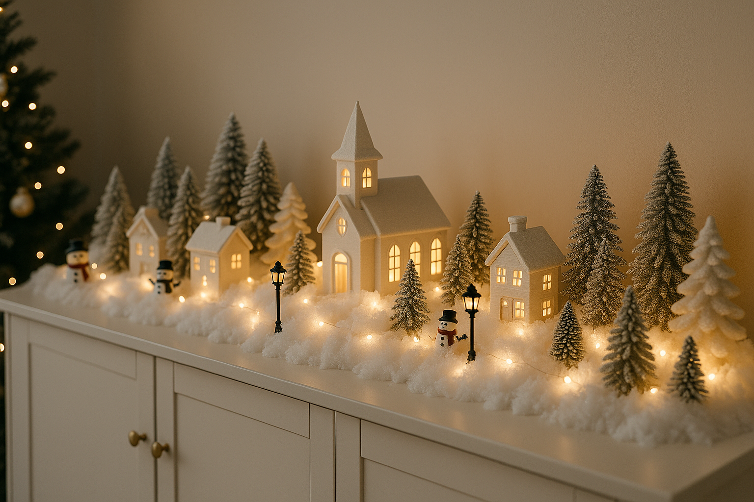 Le mini village de Noël est devenu un véritable phénomène sur TikTok, Pinterest et Instagram. Ce n’est plus juste une petite maison à côté d’un bonhomme de neige : les gens créent maintenant de véritables scènes miniatures complètes. On voit des rues enneigées, des places centrales, des marchés de Noël, des collines illuminées, des ponts, des rivières gelées, même des patinoires miniatures. Et le tout accumule des millions de vues, parce que le village miniature crée une émotion instantanée.