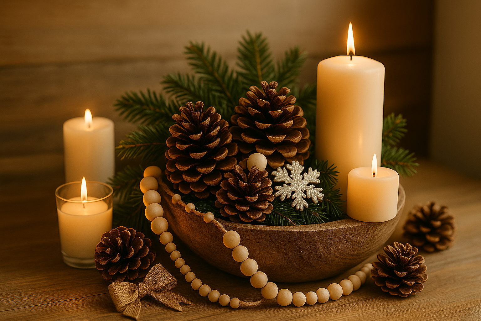 Avec les tendances 2025 — luxe accessible, bois naturel, lumière blanc chaud, mini villages, textile chalet, rustique chic, bas décoratifs, couronnes volumineuses, pots lumineux d’ambiance et mini sapins — tu peux créer un décor de Noël spectaculaire, riche, chaleureux et d’apparence professionnelle, sans jamais dépasser ton budget.
