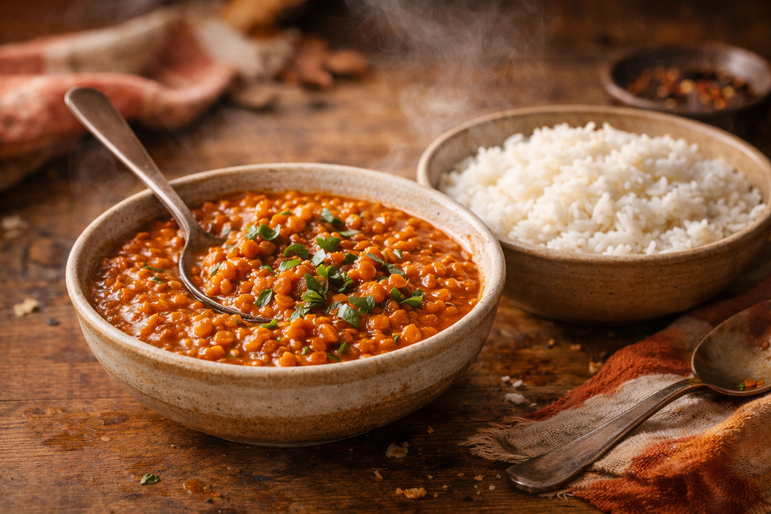 C’est un dhal vibrant, dense, onctueux, presque soyeux, un dhal qui réchauffe ton corps, ta maison, ton cœur, ton portefeuille… et même ton estime personnelle. Le riz absorbe la sauce comme un câlin chaud. L’odeur qui remplit ta cuisine pourrait convaincre n’importe qui que tu as un héritage culinaire caché.