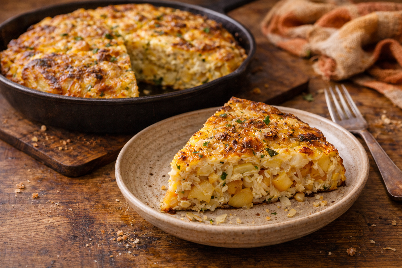 Voici une frittata inspirée des vallées du Piémont, au nord de l’Italie, où les plats les plus simples sont aussi les plus réconfortants. Dans cette région paysanne, on cuisine le chou comme un trésor d’automne, on fait dorer les patates jusqu’à ce qu’elles deviennent fondantes, et on assemble le tout dans une frittata épaisse et moelleuse cuite lentement à la poêle. La version FRUGALO respecte cette tradition, mais en optimise chaque geste : un peu de fromage pour enrichir, un soupçon de thym pour parfumer, une touche de paprika pour la chaleur, et quatre œufs qui transforment trois ingrédients bon marché en un repas complet, nourrissant, réconfortant et incroyablement économique. Un “brunch du soir” gourmand, doré, parfumé, qui se prépare en dix minutes et coûte moins qu’un café latté.