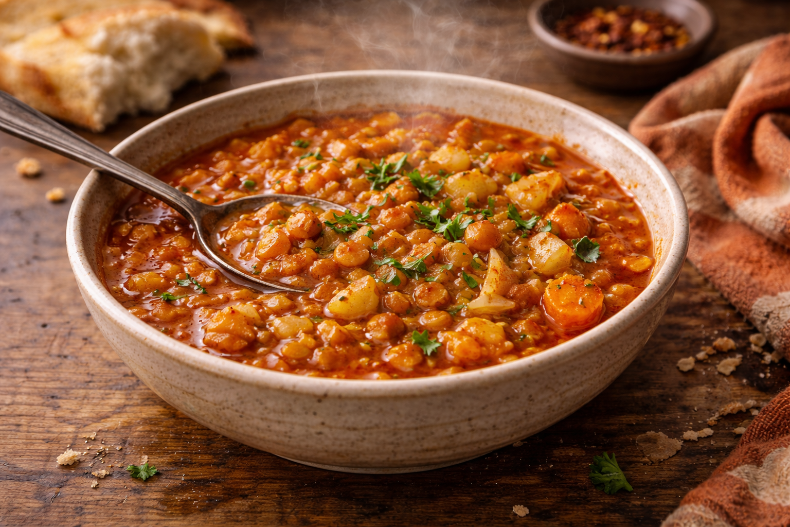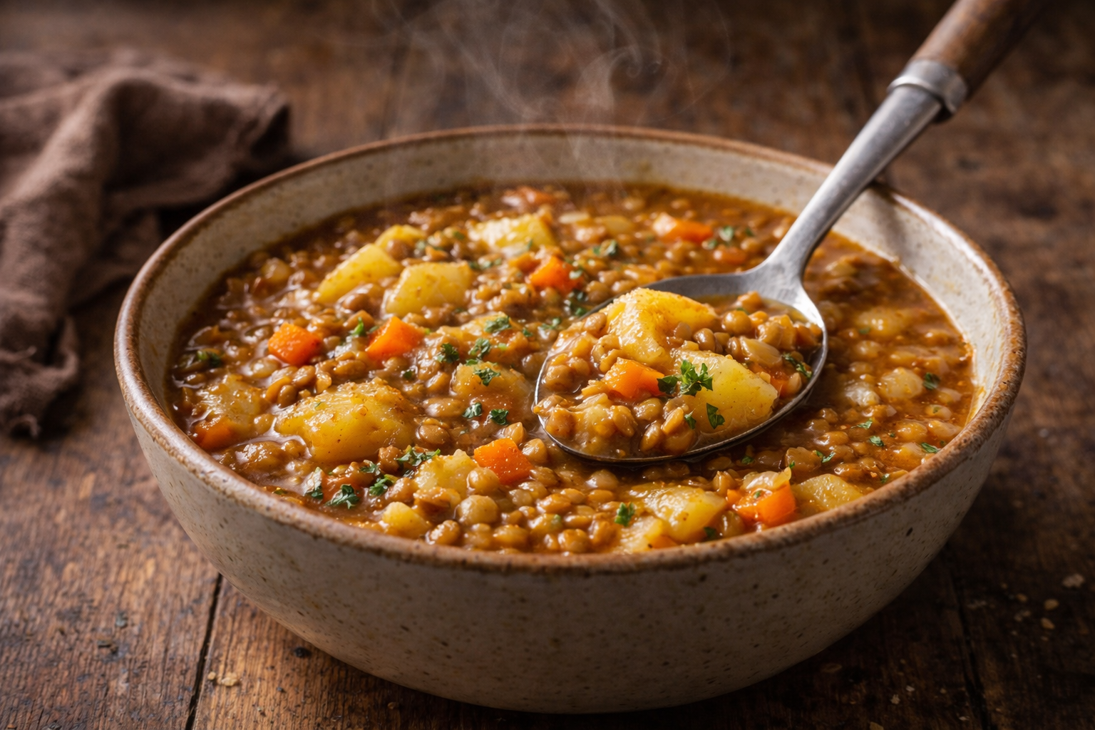 Entre les mijotés irlandais et les ragoûts canadiens, ce stewp — un hybride parfait entre un stew et une soup , Stewp— est probablement le plat d’automne le plus intelligent pour survivre à l’inflation. Patates fondantes, carottes sucrées, lentilles rousses qui deviennent presque crémeuses en mijotant, bouillon doré au thym… C’est un repas qui se prépare avec trois fois rien, mais qui goûte comme si tu avais humé le cœur de l’automne lui-même.
