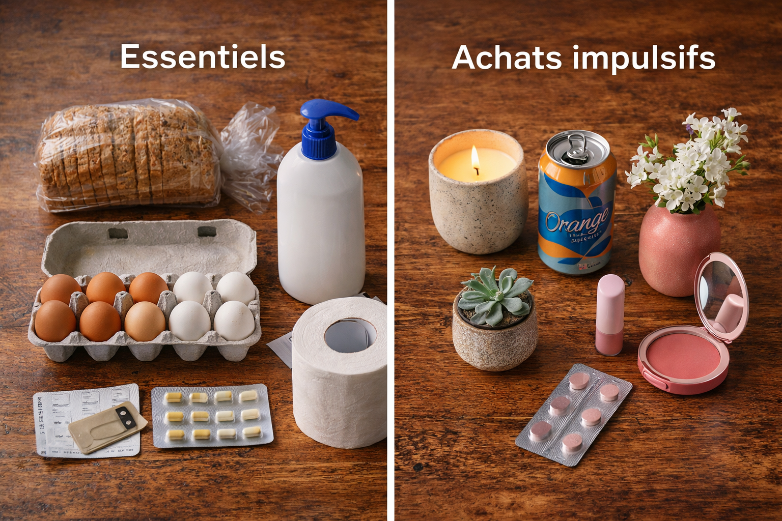 Dans un no spend, la ligne entre essentiel et non essentiel doit être brutalement honnête. Sinon, tu vas transformer ton défi en festival de justifications élégantes. Les catégories généralement considérées comme essentielles sont assez simples : épicerie de base, médicaments, transport nécessaire, hygiène, obligations fixes, produits indispensables du quotidien. Plusieurs guides récents listent aussi les articles vraiment utiles comme les denrées, les médicaments, l’essence, certains produits papier ou items de dépannage nécessaires.