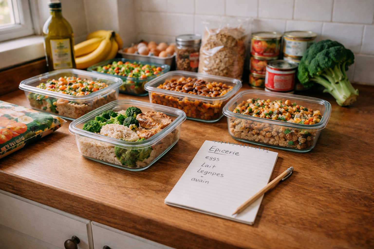 Première chose : tu regardes ce que tu as déjà. Garde-manger. Congélo. Salle de bain. Produits ménagers. Papiers. Petites réserves oubliées. Cette étape est capitale. Les guides frugalité récents insistent d’ailleurs sur un point simple, mais puissant : utiliser ce qu’on a déjà à la maison et planifier les repas à partir de ses réserves permet de couper les achats inutiles et le gaspillage. La planification des repas peut même réduire les dépenses alimentaires de façon notable.
