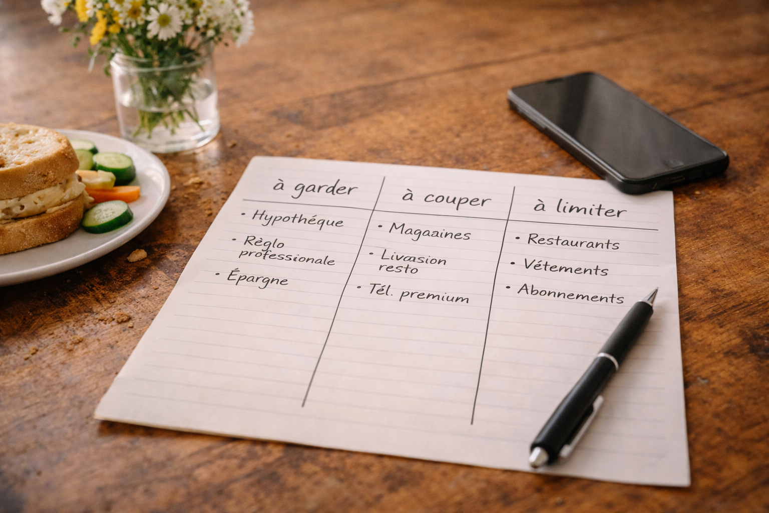 Avant de commencer, écris une phrase ultra simple sur une feuille ou dans ton cell : “Pendant 30 jours, je paie mes essentiels, puis tout le reste attend.” Ensuite, fais deux colonnes : permis et interdit. Pas quinze nuances, pas trois annexes, pas un document de ministère. Plus tes règles sont courtes, plus tu vas les respecter. Le but, c’est de tuer le flou. Le flou coûte cher. La clarté, elle, garde ton argent chez vous.