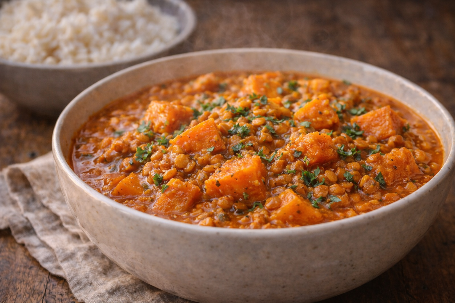 C’est un plat végétarien nourrissant, riche en protéines, en fibres et en réconfort, pensé autant pour les jours gris que pour les fins de mois serrées. Les lentilles soutiennent, les patates douces apportent une texture onctueuse, et les épices font toute la job sans coûter cher. La beauté de cette recette, c’est sa simplicité : tu mets tout ensemble, tu couvres, tu laisses le temps travailler pour toi.