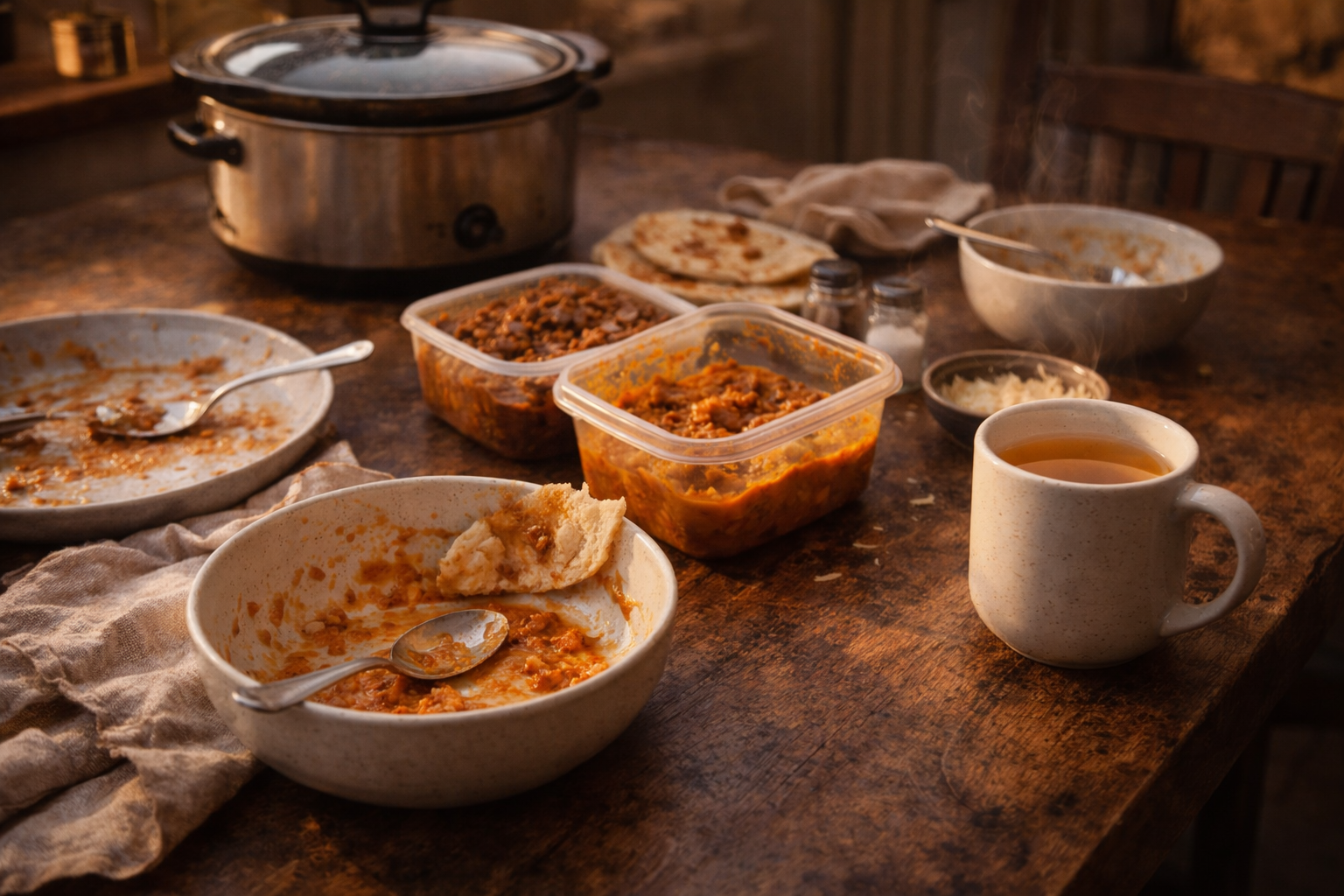 Et c’est là que la mijoteuse devient magique : elle réduit le gaspillage sans que tu t’en rendes compte. Les légumes fatigués, les restes de bouillon, les fins de sacs d’épices, les boîtes qui attendent dans le garde-manger… tout retrouve une mission. Rien n’est perdu, tout est transformé. Tu cuisines une fois, tu manges plusieurs fois. Tu congèles, tu réchauffes, tu respires. Ton frigo devient une petite banque alimentaire personnelle, et ton congélo, ton meilleur ami quand t’as zéro motivation.