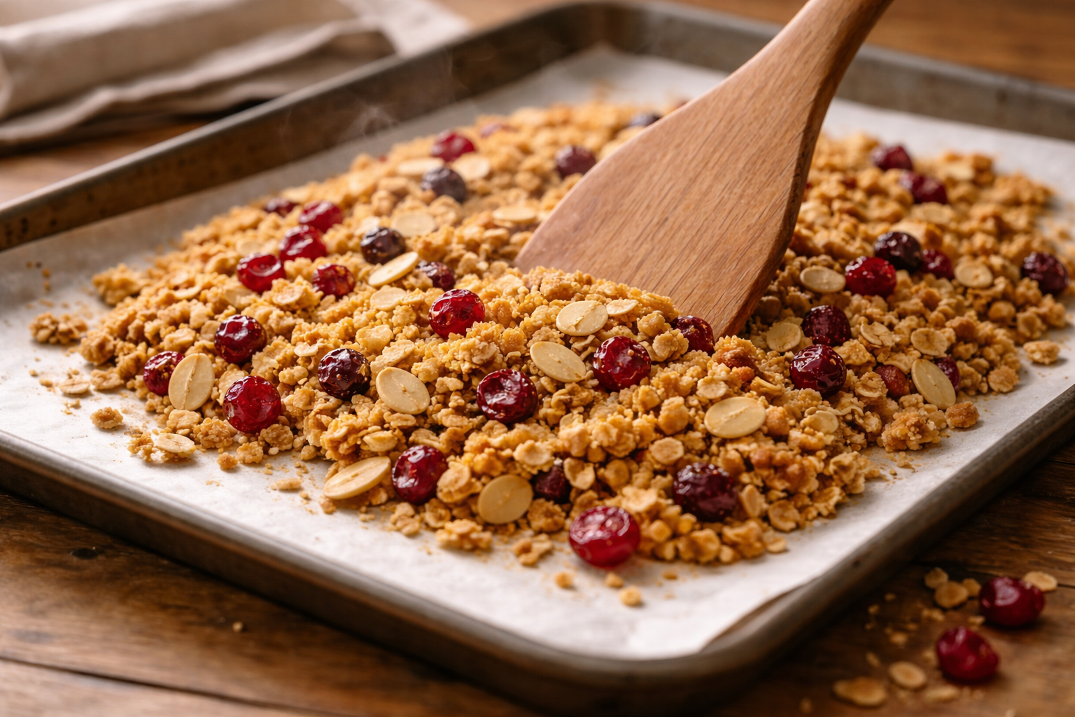 Ici, rien n’est là par hasard. Les amandes apportent le croquant qui rassasie, les canneberges réveillent le palais, et le miel lie le tout sans masquer les saveurs. C’est une recette qui s’intègre dans une routine réelle : matin pressé, lunch à préparer, budget à respecter. Elle ne promet pas une vie parfaite, elle livre quelque chose de mieux : de la constance, du goût et une facture réduite.