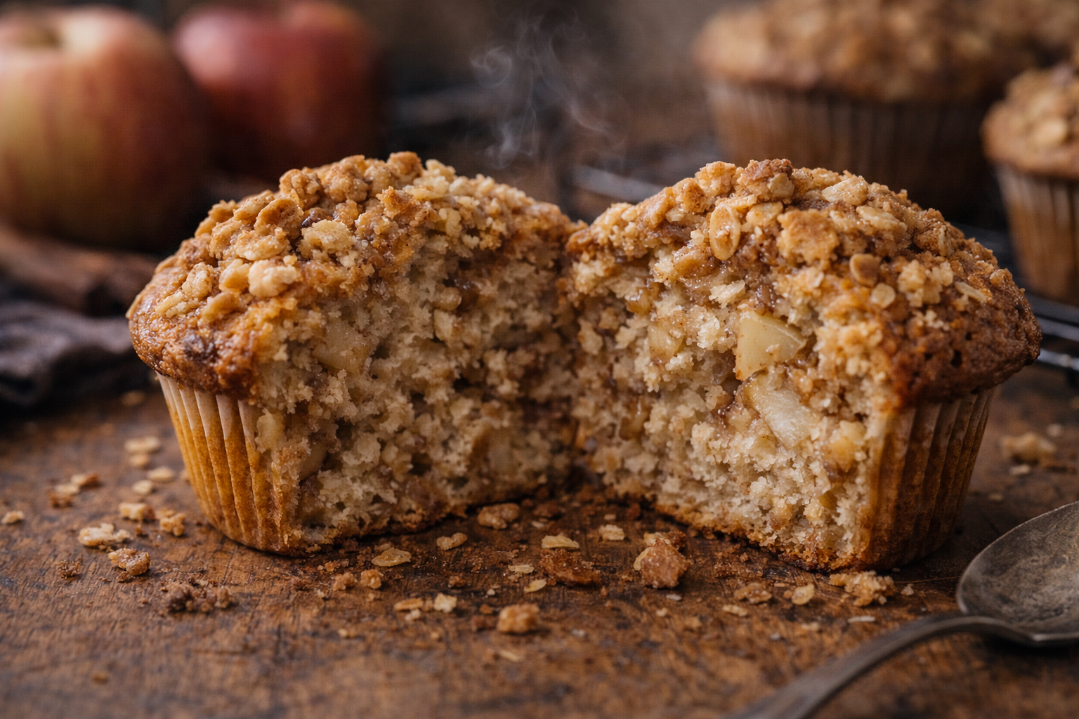 4. Muffins pommes-cannelle avec crumble d’avoine – automne portatif, croquant réconfort