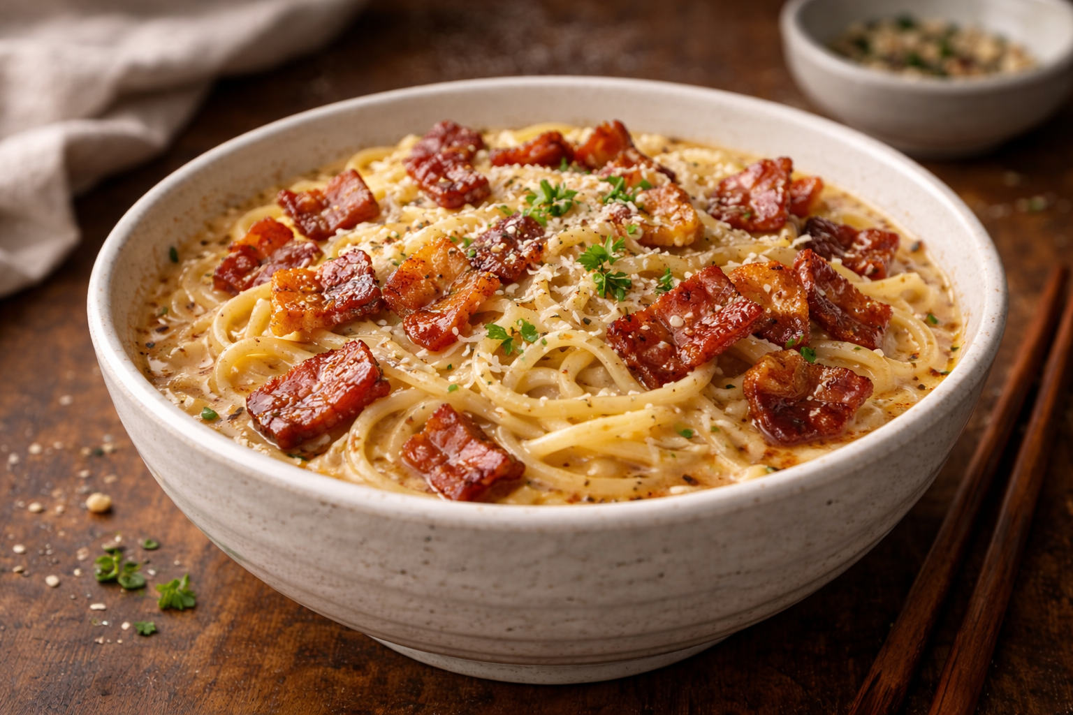 Le secret dâun ramen carbonara rĂ©ussi, câest la tempĂ©rature. Les Ćufs ne doivent jamais cuire sur le feu. Travaille toujours hors chaleur et ajoute lâeau de cuisson graduellement pour contrĂŽler la texture. Utilise un parmesan bien sec : tu en mets moins, le goĂ»t est plus intense. Le tofu fumĂ© est une alternative Ă©conomique et durable qui se conserve longtemps. RĂ©sultat : un bol crĂ©meux, stable, rassasiant, sans crĂšme et sans gaspillage.