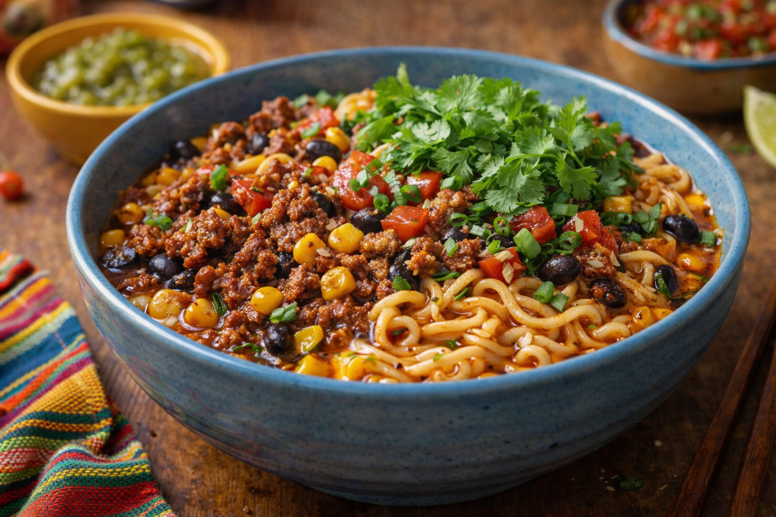 Le Ramen Taco Mexicain version Frugalo est pensĂ© pour une chose : mettre de lâĂ©nergie dans lâassiette sans compliquer la vie. Câest un bol joyeux, colorĂ© et rassasiant qui combine la rapiditĂ© du ramen avec les saveurs franches dâun taco bien montĂ©. Ici, pas de bouillon complexe ni de longues cuissons. On mise sur des ingrĂ©dients simples, abordables et faciles Ă conserver, capables de livrer beaucoup de goĂ»t en peu de temps.