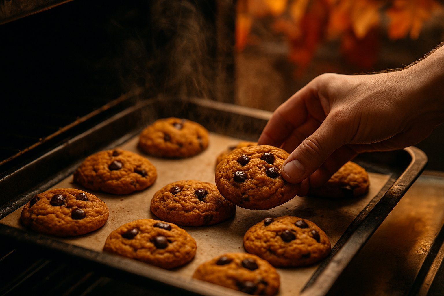 La citrouille remplace une partie du gras, donc le biscuit reste moelleux sans être lourd. Résultat : texture parfaite, parfum d’automne, zéro culpabilité.