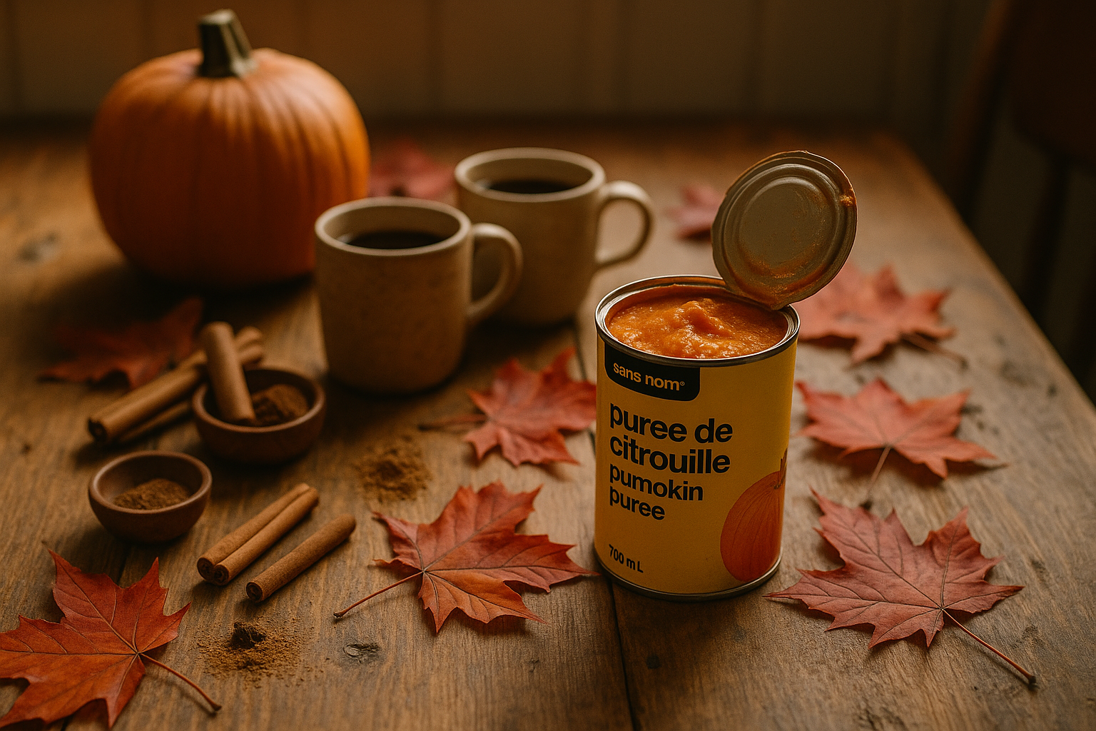 Chaque automne, le Québec se transforme : les feuilles tombent, les chandails ressortent, et tout le monde se met soudainement à mettre de la cannelle partout. C’est la saison des lattés à 7 $, des chandelles au nom de forêt humide, et des publications Instagram avec un “#cozylife” trop propre pour être vrai. Mais pendant que certains payent pour boire l’automne, d’autres — les vrais frugaux — le mangent. En tarte, en pain, en biscuits… et toujours avec un sourire satisfait. Parce qu’entre toi et moi, une boîte de purée Sans Nom à 6 $ (796 ml) te donnera bien plus de bonheur qu’un latté éphémère. Et oui, on va parler vrai : la citrouille, c’est rendu un petit luxe. Et les fonds de tarte Tenderflake (2 croûtes pour 4,49 $) ne sont pas toujours en spécial.