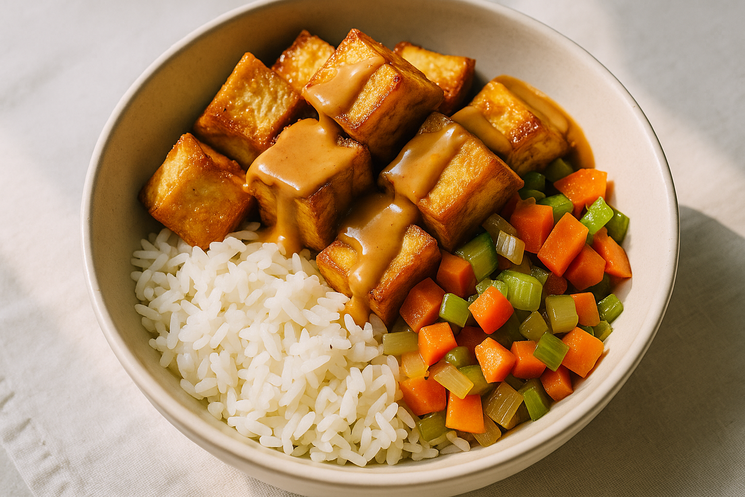 Avec une sauce crémeuse au beurre d’arachide et un peu de croquant, t’as un plat de semaine qui goûte le take-out… sans le prix.