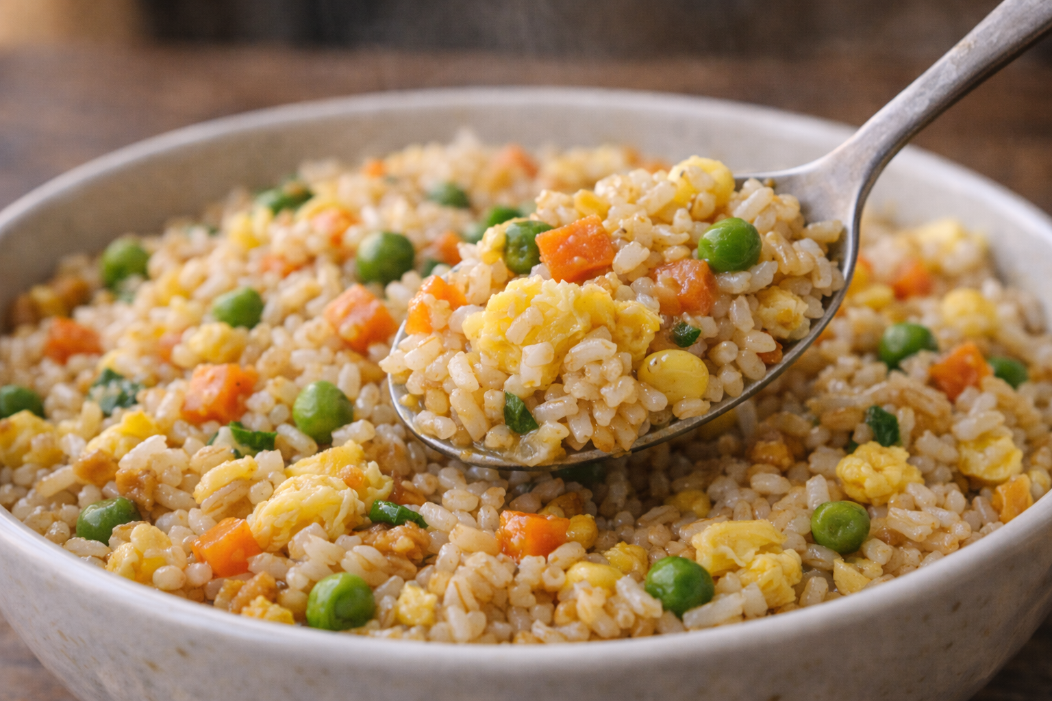 Utilise les œufs comme protéine de secours stratégique. Peu coûteux, rapides à cuire et ultra polyvalents, ils transforment instantanément du riz déjà cuit en souper complet et rassasiant. Le riz du lendemain, plus sec, absorbe mieux les saveurs et donne une texture idéale, digne d’un vrai riz sauté. Recycler ainsi les restes élimine le gaspillage, réduit les achats impulsifs et fait baisser automatiquement le budget alimentaire hebdomadaire.