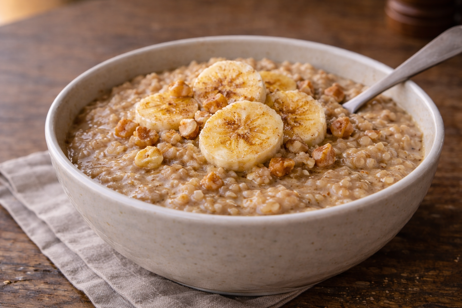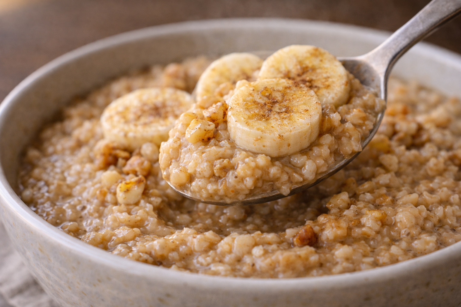 Prépare ton gruau plus épais que la normale et mange-le bien chaud. Une texture dense ralentit la digestion, stabilise la glycémie et prolonge la satiété réelle. Résultat mesurable : moins d’envies sucrées, moins de grignotage et moins d’achats impulsifs sur la journée. Ce simple ajustement transforme un déjeuner à quelques cents en outil stratégique de contrôle budgétaire durable, validé autant par la nutrition que par l’économie domestique.