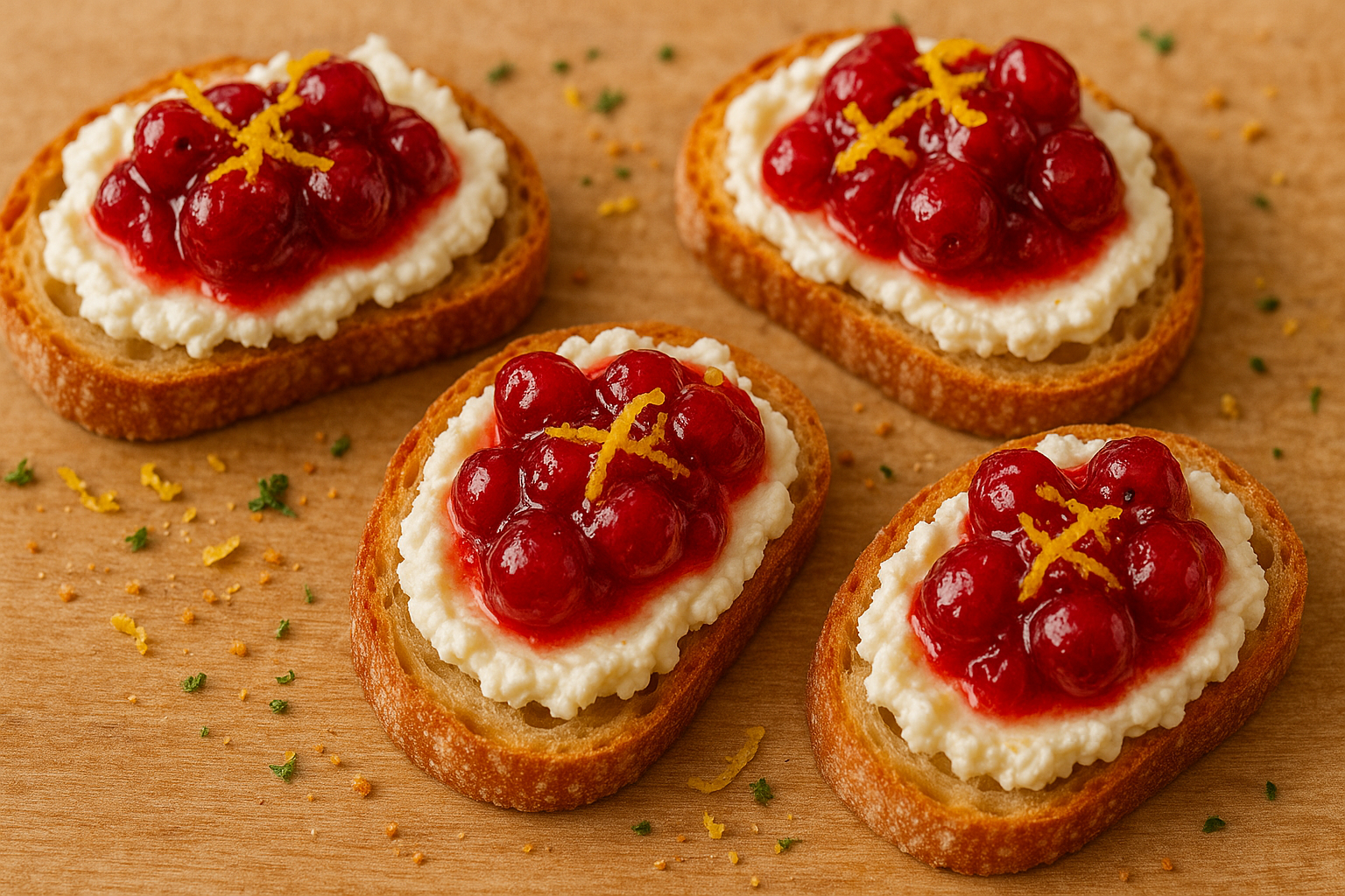 Ces crostinis ricotta-citron et canneberges rôties sont l’apéro parfait pour un réveillon frugal chic : simples, élégants, économiques et absolument irrésistibles. Le contraste entre la ricotta crémeuse, le citron lumineux et les canneberges rôties au four crée une bouchée fraîche, vibrante, digne d’un cocktail de chef — mais pour une fraction du prix. C’est le genre d’apéro qui attire les regards, déclenche les “wow”, se prépare en avance et coûte presque rien. Flatteur, photogénique, festif, c’est un incontournable du temps des Fêtes. Un apéro qui prouve que simplicité + intention = luxe accessible signé FRUGALO.