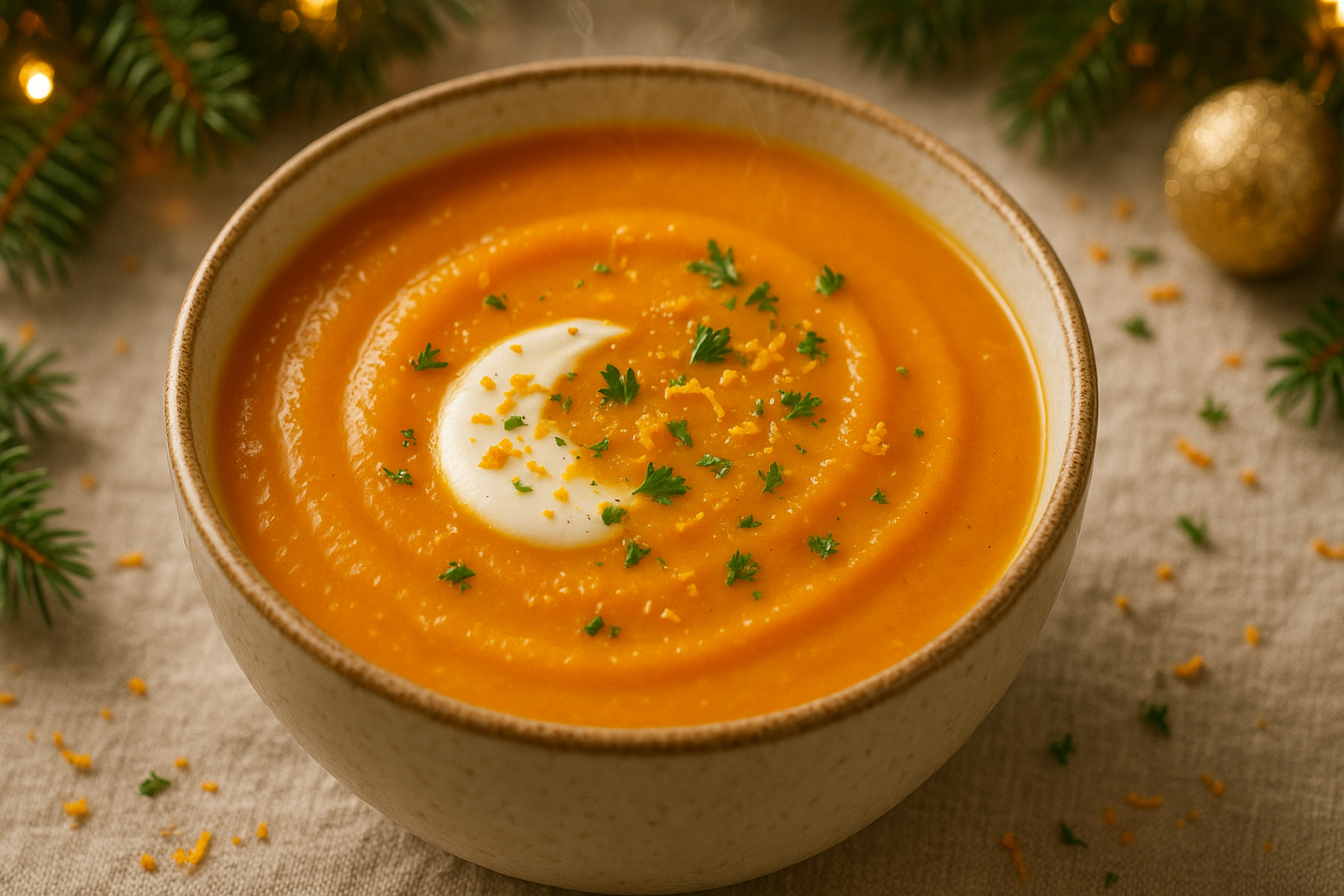 Ajoute 1 c. à thé de zeste d’orange finement râpé juste avant de servir. Cette touche aromatique fait exploser les parfums, crée une signature “Noël gastronomique” instantanée et transforme un velouté simple en entrée digne d’un grand chef — pour un coût quasi nul.