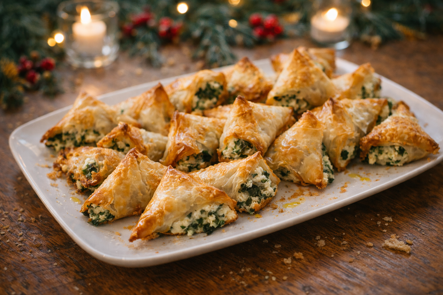 Ces mini bouchées ont exactement ce qu’on cherche au temps des Fêtes : elles sont petites, croustillantes, chaudes et impossibles à manger sans en reprendre une deuxième. Inspirées des bouchées servies dans les cocktails de traiteur, elles donnent une impression gastronomique immédiate tout en reposant sur des ingrédients simples et peu coûteux. Les épinards apportent la fraîcheur, la feta le caractère, et la pâte phyllo crée ce contraste croustillant qui fait toute la différence. C’est un apéro propre, net, élégant, qui se mange en une bouchée, sans ustensiles, sans stress. En contexte de réveillon, elles installent le rythme, rassurent les invités et annoncent clairement une soirée maîtrisée. Du vrai frugal chic : simple, efficace, et pensé pour recevoir intelligemment.
