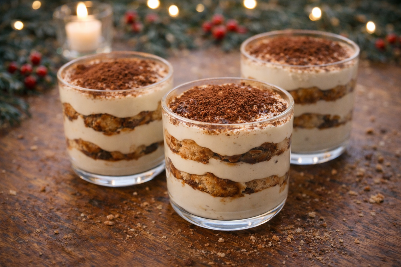 Après un repas riche, généreux et chaleureux, il faut savoir finir avec intelligence. Ce tiramisu simplifié en verrines est exactement ce qu’on attend d’un dessert de fin de réveillon : léger, aérien, frais, mais suffisamment gourmand pour créer un vrai moment “wow”. Servi en portions individuelles, il donne instantanément une impression de dessert chic, réfléchi et maîtrisé. Pas besoin de mascarpone hors de prix ni de techniques complexes : ici, on mise sur une mousse douce, bien équilibrée, et un montage simple qui fait tout le travail visuel. C’est un dessert qui se prépare à l’avance, se conserve parfaitement et libère complètement l’hôte le jour même. En bouche, il apaise, rafraîchit et conclut le repas sans alourdir. C’est la preuve qu’un dessert peut être élégant, populaire et économique à la fois — et qu’un réveillon réussi se termine toujours avec légèreté et intention.