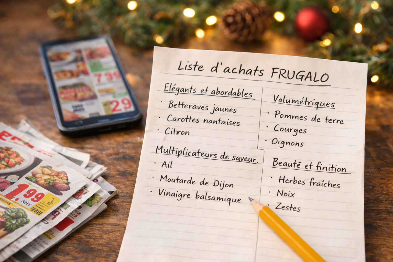 Et c’est exactement pour ça que FRUGALO existe. Pour t’offrir des méthodes concrètes, des stratégies d’épicerie, des recettes intelligentes, des techniques professionnelles et des cadres simples qui t’aident à reprendre le contrôle. Pour te donner des outils qui réduisent tes dépenses sans réduire ta qualité de vie. Pour te montrer qu’on peut cuisiner magnifiquement sans exploser son budget. Pour t’aider à bâtir des réveillons qui donnent envie de s’asseoir autour de la table, pas de fuir vers la cuisine.