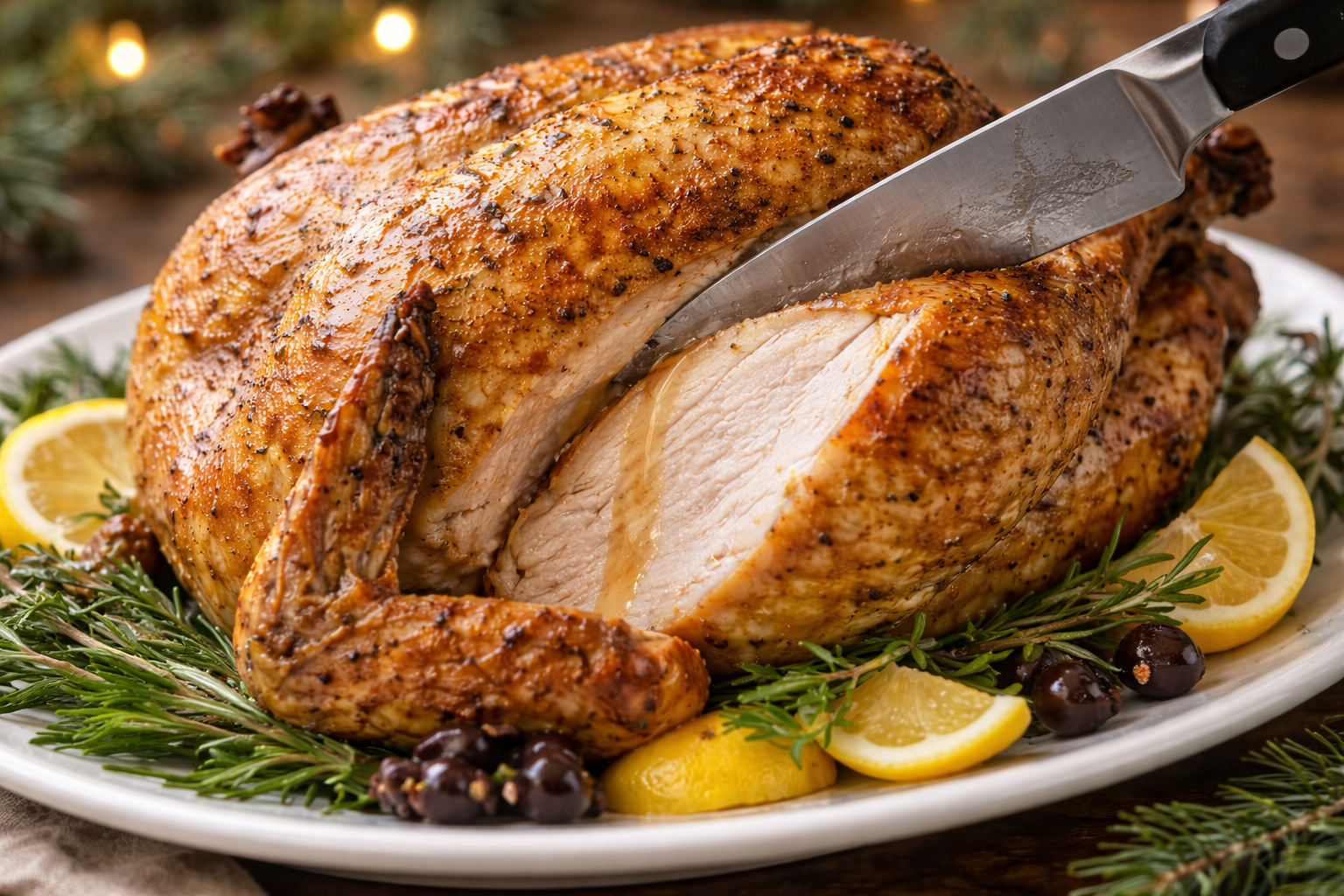 C’est tout. Une courte phase de couleur, une cuisson douce et constante, une température interne précise — et tu obtiens une dinde parfaitement réussie, sans stress et sans technique compliquée.