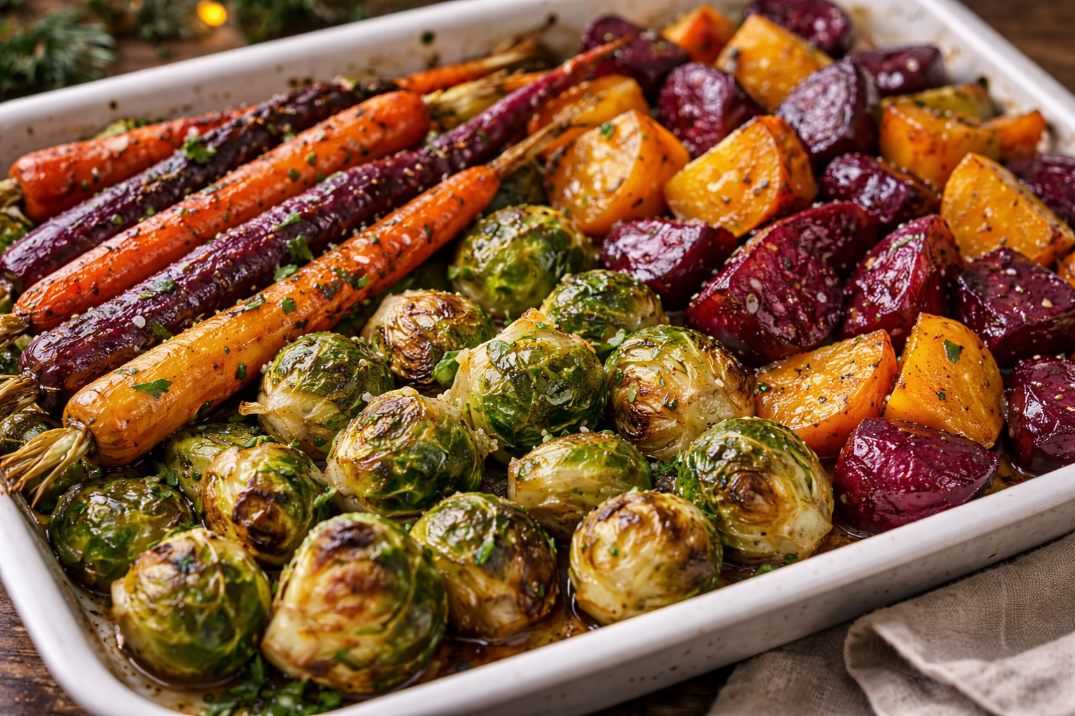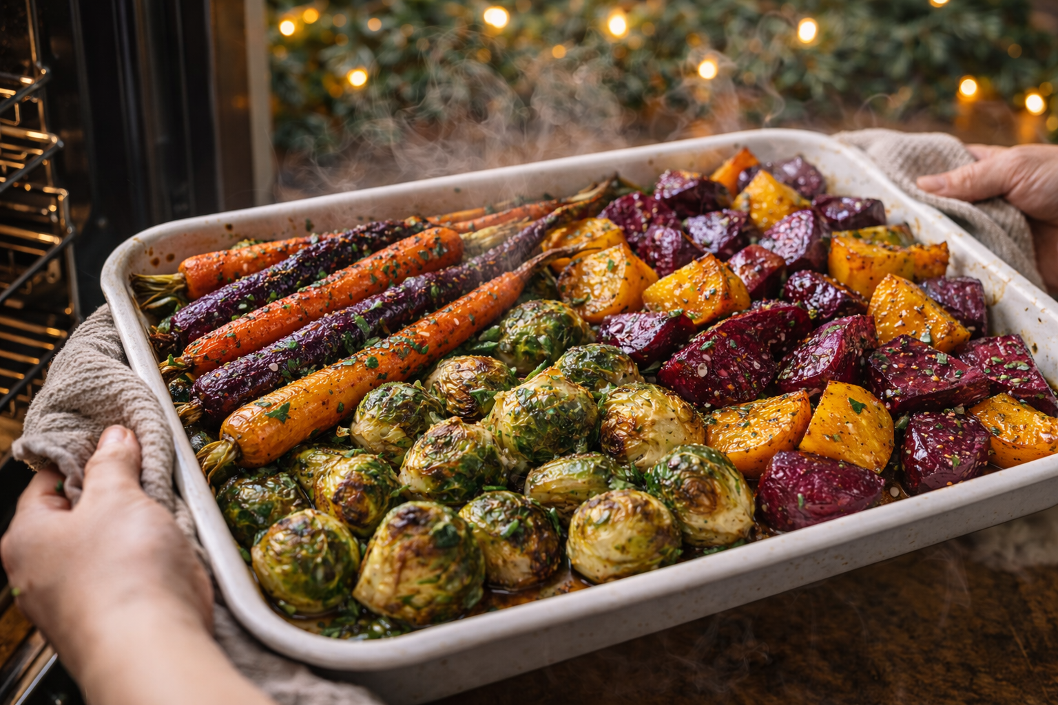 Les légumes rôtis, c’est l’élégance frugale par excellence. Un plat simple, beau, accessible et spectaculaire, capable de transformer ton réveillon… et ton budget.