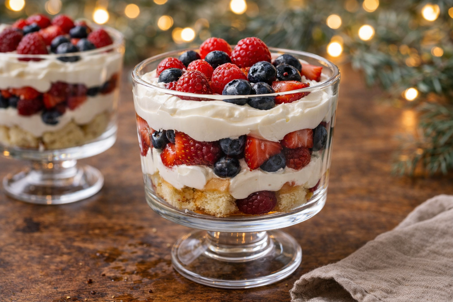 Le trifle, aussi appelé bagatelle, est sans doute le dessert le plus spectaculaire, simple et économique que tu peux servir au réveillon. Avec ses couches de gâteau moelleux, de crème onctueuse et de fruits éclatants, il offre un effet “wow” instantané… pour une fraction du prix des desserts traditionnels de Noël. Ce dessert des Fêtes est parfait pour impressionner sans stress, sans technique compliquée et sans exploser ton budget. Décadent, crémeux, frais et photogénique, le trifle frugalo est devenu un incontournable au Québec. Une seule cuillerée, et tes invités croiront que tu l’as acheté en pâtisserie.