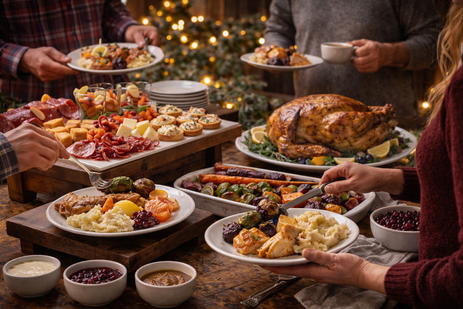 Je vais être très franche : le service à l’assiette pendant un réveillon, c’est la façon la plus rapide de perdre ta patience, de te coller un sprint inutile et de transformer ta soirée en marathon de va-et-vient. Pendant que tu sers les premiers, les autres attendent, la nourriture refroidit et toi, tu ne profites de rien. Le buffet, lui, est ton meilleur allié. Les études démontrent qu’un buffet bien structuré peut réduire jusqu’à 40 % du gaspillage alimentaire. Ce n’est pas un chiffre inventé : c’est simplement le résultat d’un principe logique. Les gens se servent selon leur faim réelle. Ils ne se sentent pas obligés de vider une assiette qu’on leur a imposée. Ils ne prennent que ce qu’ils aiment et ils peuvent revenir discrètement sans interrompre la conversation. Résultat : moins de gaspillage, moins de stress, moins de coûts… et beaucoup plus de plaisir.