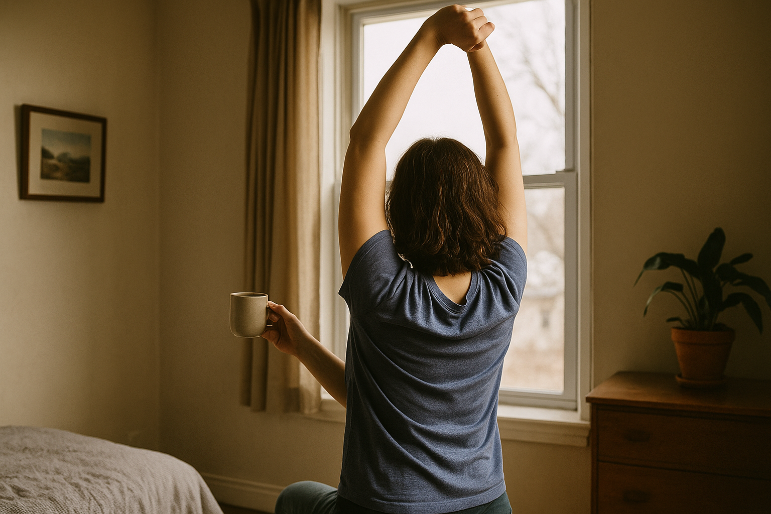 Commence doucement : un verre d’eau, un étirement, un café chaud.
