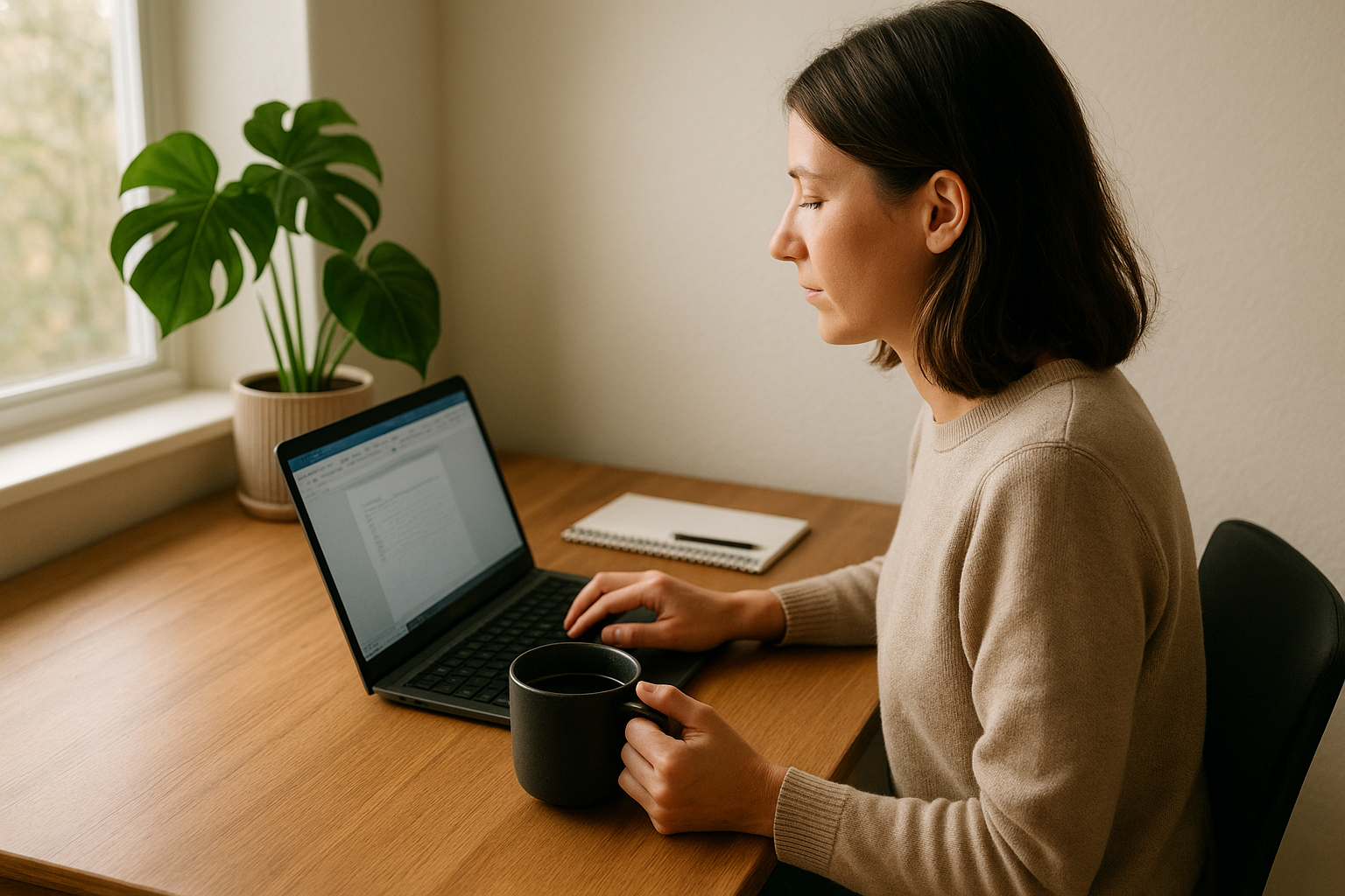 Plutôt que de forcer, adopte la philosophie slow. Travaille en blocs de 50 minutes, puis prends une vraie pause : marche, étire-toi, change de pièce, bois de l’eau.