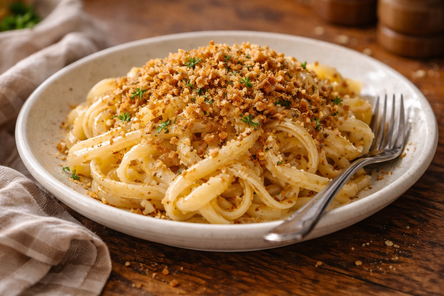 2. Pâtes beurre brun & chapelure croustillante — le luxe né de presque rien