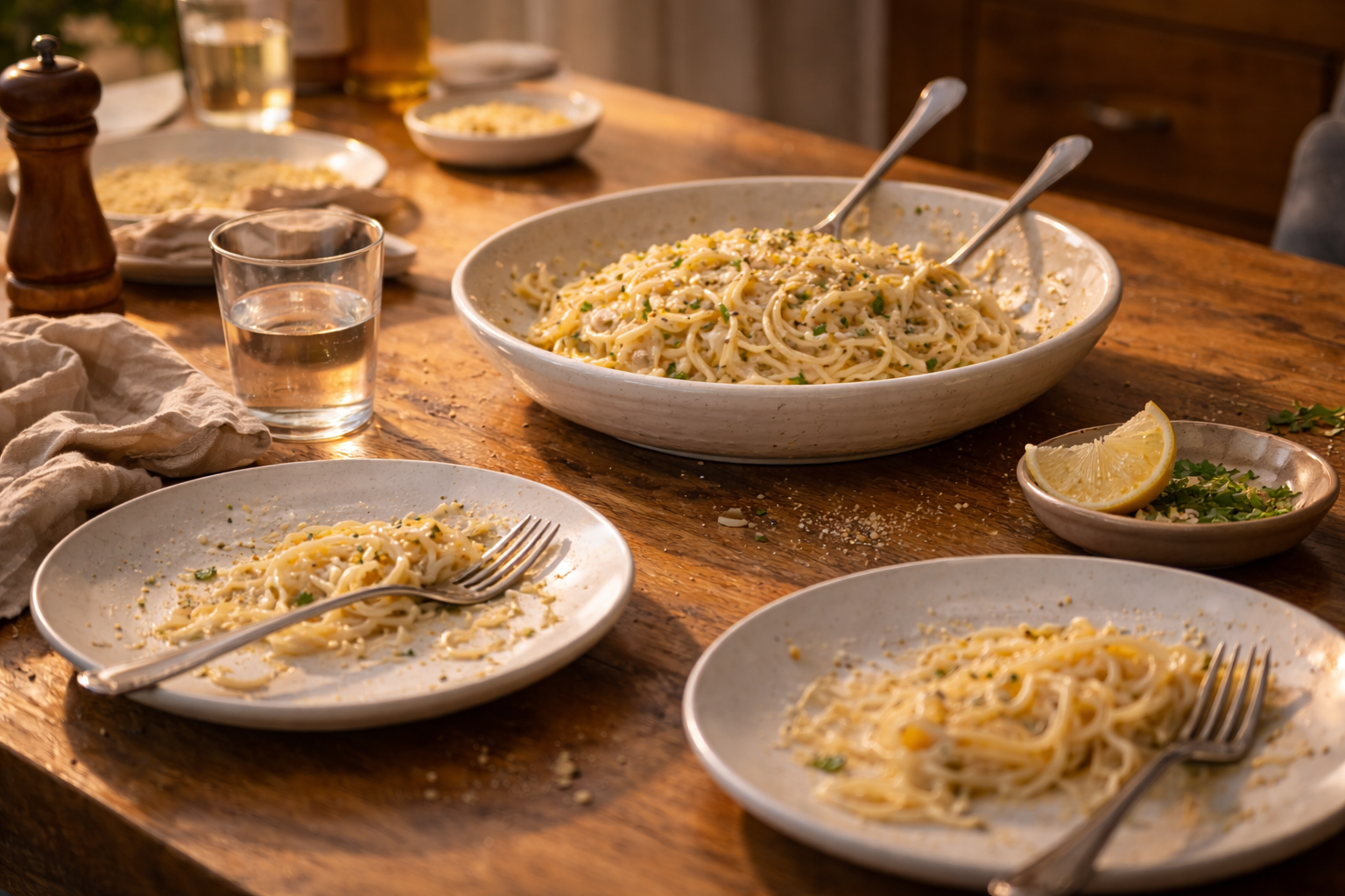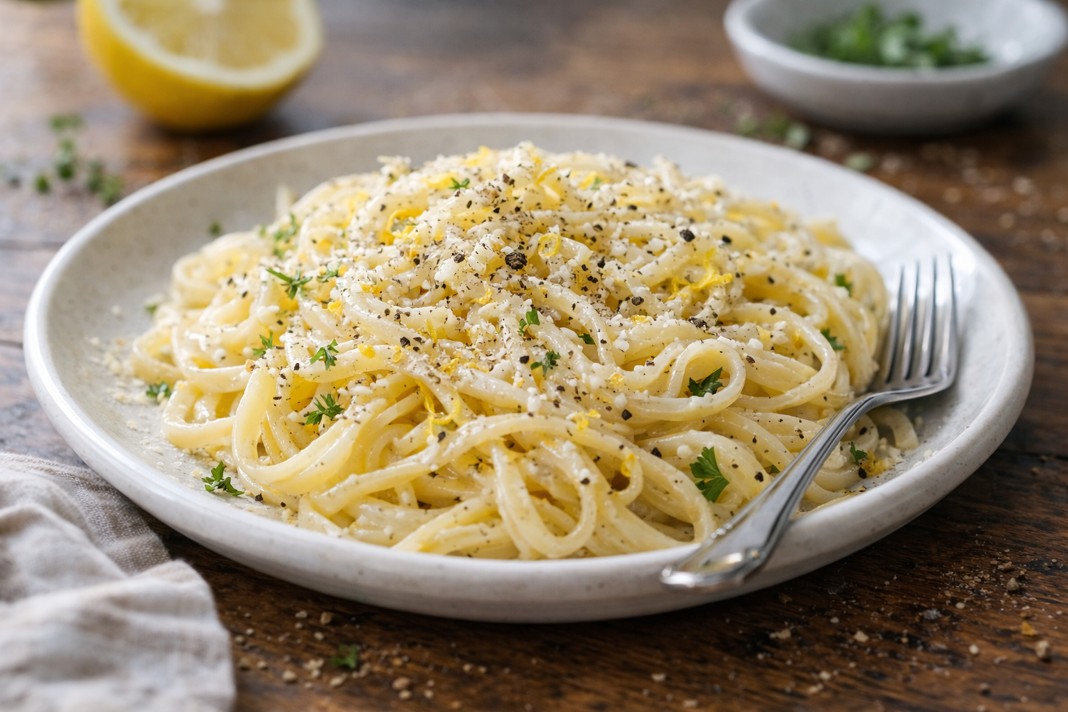 3. Pâtes citron, parmesan & poivre — la fraîcheur qui coupe la lourdeur