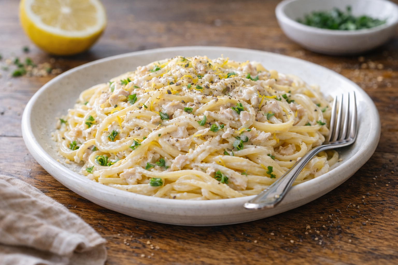 9. Pâtes au thon crémeux citronné — rapide et étonnamment chic