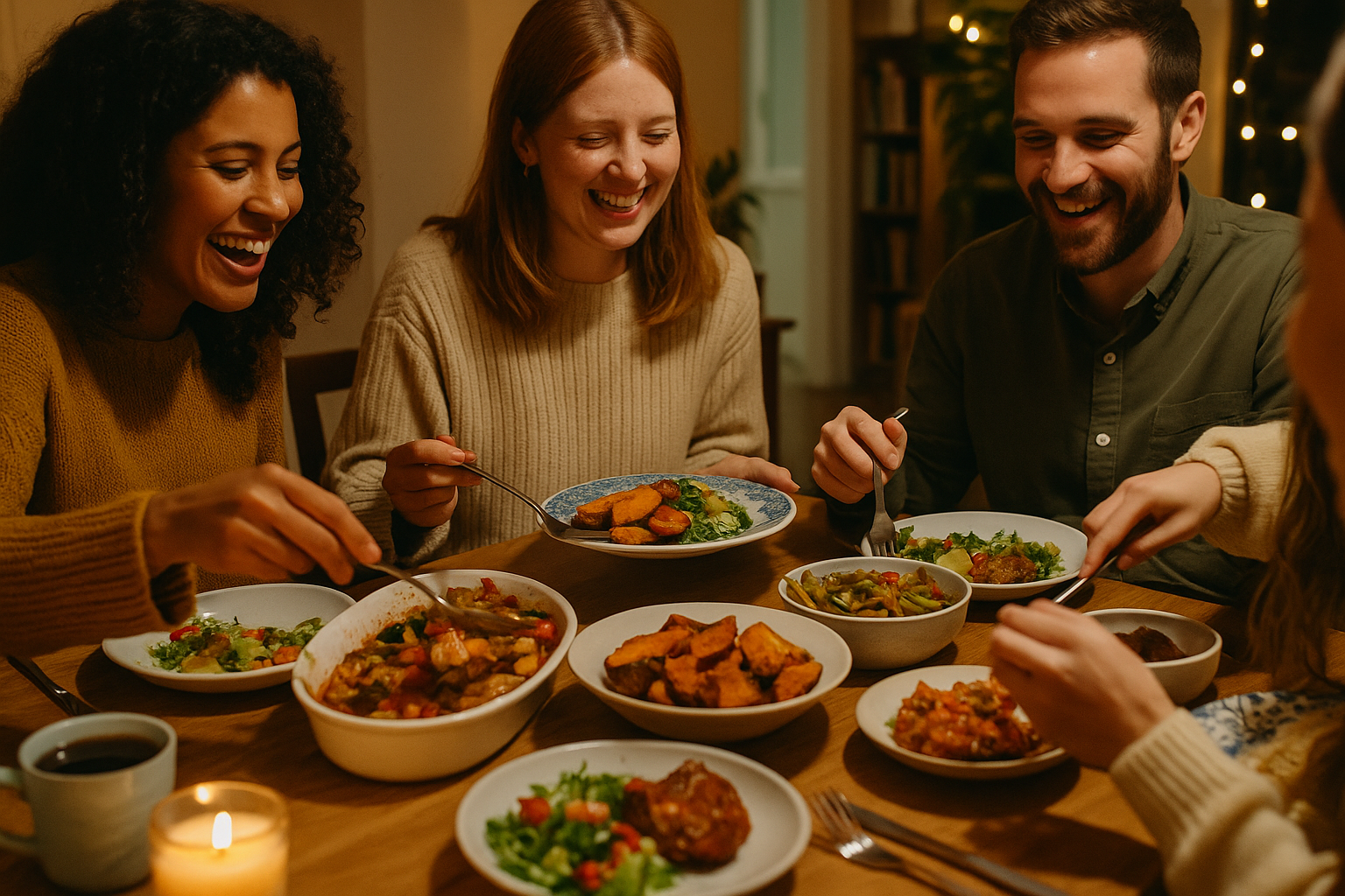 Organise des soupers collaboratifs façon potluck : chacun amène un plat, un dessert ou une bouteille.